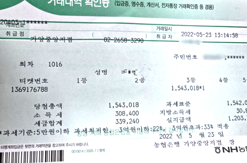 3. “회원”이 발급・제공받은 “한국복권센터 조합번호” 중 2개 이상의 당첨이 발생하는 경우 중복 당첨은 인정하지아니하며, 2개 이상 당첨시 가장 높은 등위의 결과만을 인정합니다.